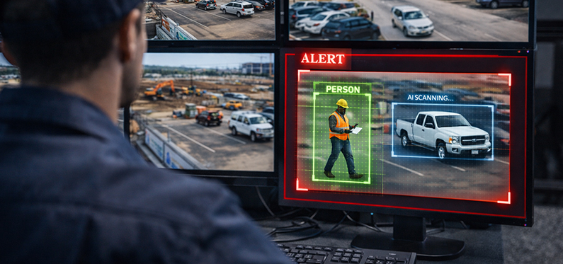 Advanced AI-powered cameras continuously monitor your property 24/7, analyzing activity in real time. The system is trained to detect people, vehicles, loitering behavior, perimeter breaches, and unusual activity based on your site’s specific security protocols. Instead of flooding you with unnecessary alerts, the AI filters out normal activity and flags only events that require attention — ensuring faster and more accurate threat detection.